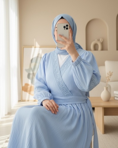 Dantel Detaylı Bağlamalı Kolu Lastikli Kraş Etekli Takım Bebe Mavi
